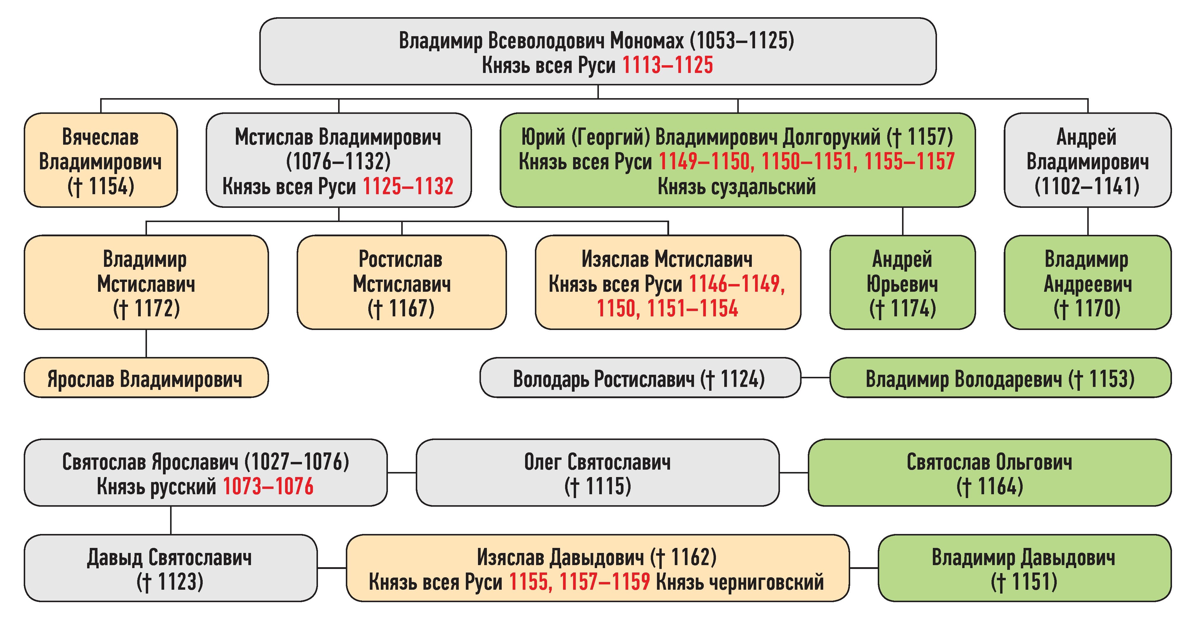 Генеалогическая схема к продолжению усобицы Изяслава Мстиславича и Юрия Владимировича в апреле-мае 1151 г.
