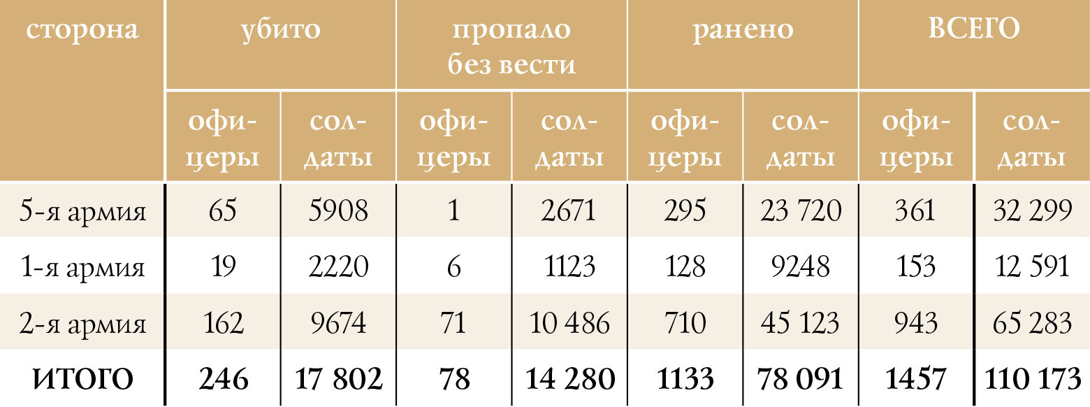 Потери сторон в мартовском наступлении по сведениям, подготовленным для Николая II