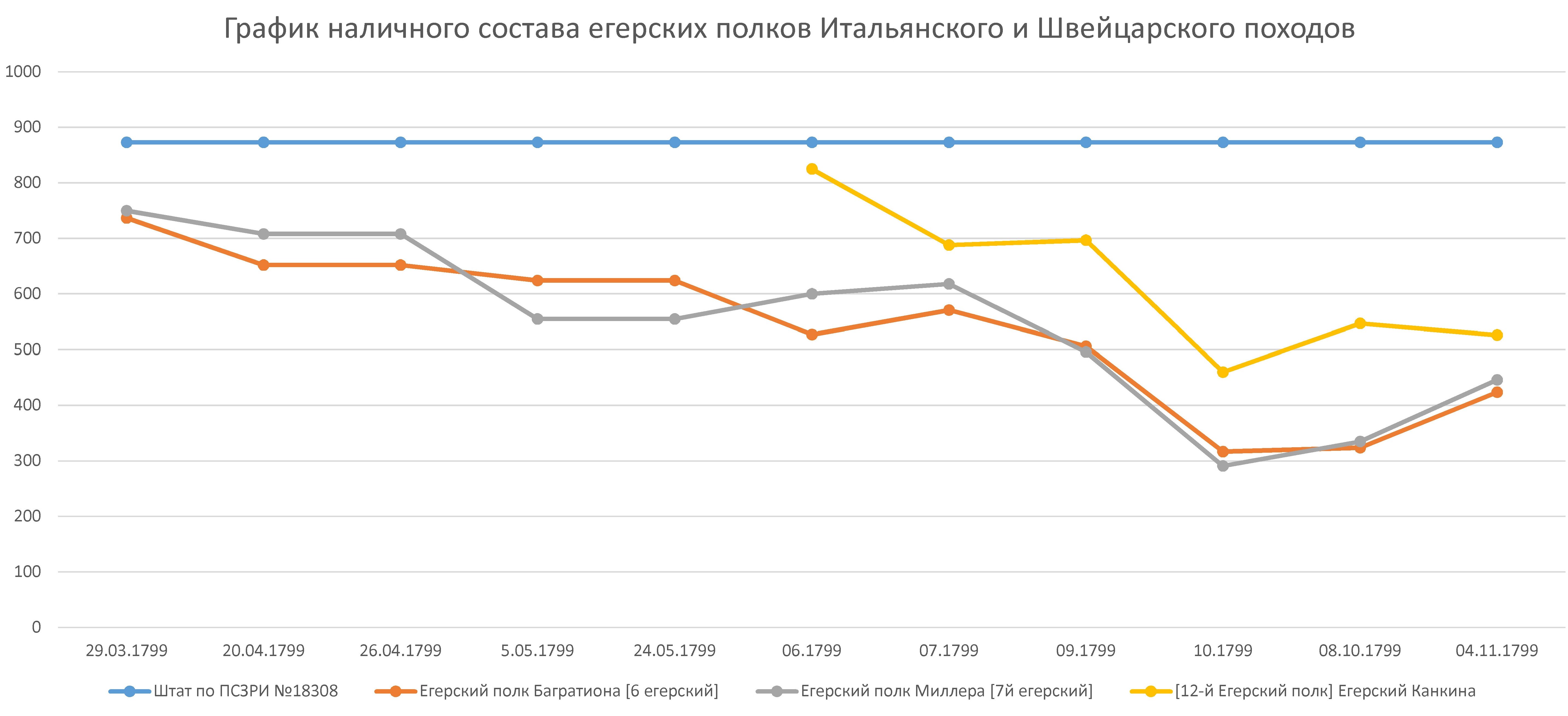 График наличного состава егерских полков Итальянского и Швейцарского походов русской армии