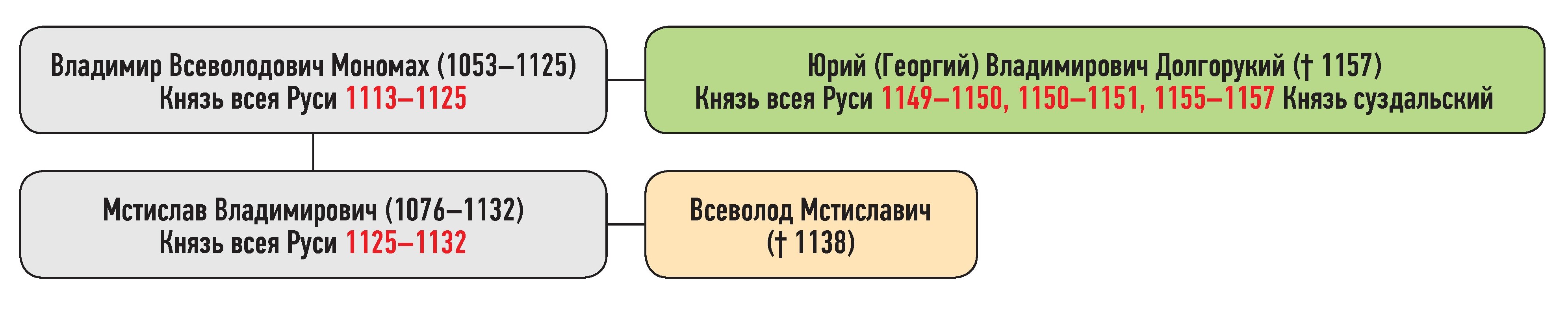 Всеволод Ольгович — сын Олега Святославича, Юрий Владимирович — сын Владимира Мономаха