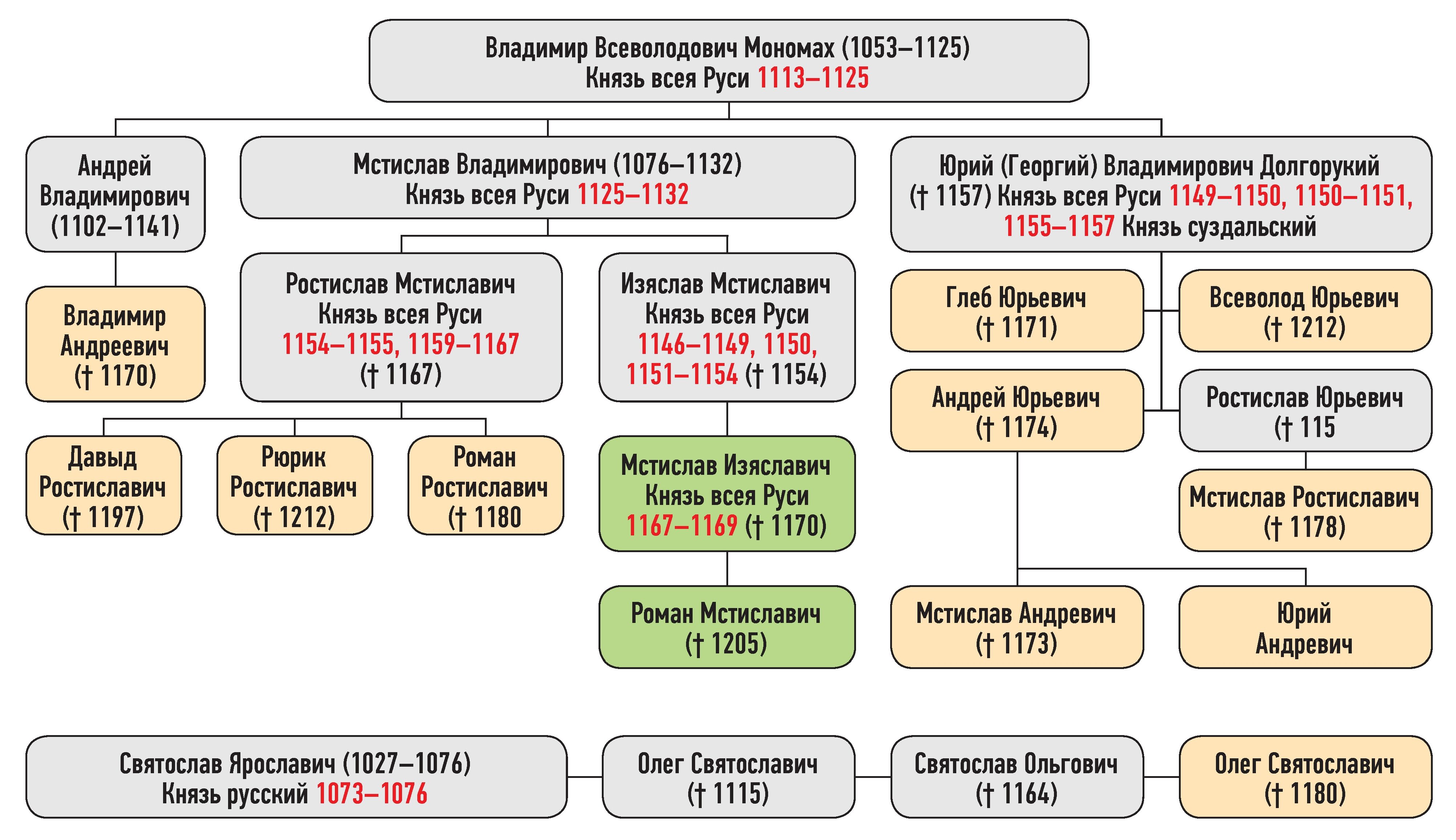 Генеалогическая схема к походу Андрея Боголюбского на Киев против Мстислава Изяславича зимой 1168 г. — весной 1169 г.
