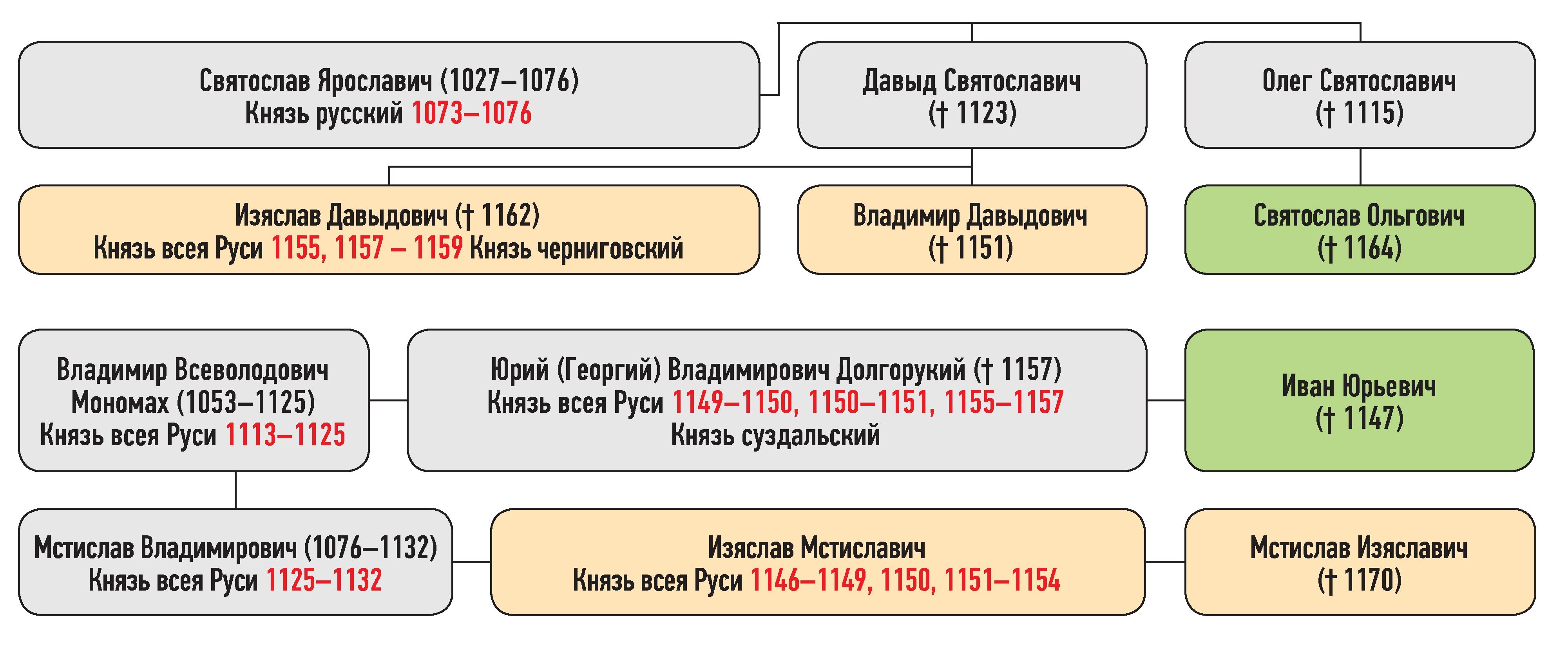 Изяслав Мстиславич — сын Мстислава Владимировича, Мстислав Изяславич — сын Изяслава Мстиславича, Святослав Ольгович — сын Олега Святославича, Иван Юрьевич — сын Юрия Владимировича