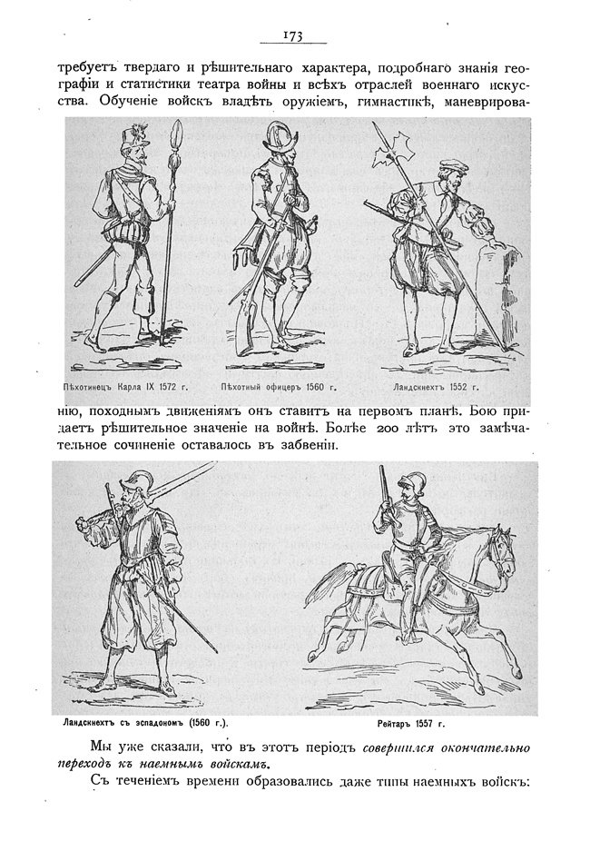 Пехотинец Карла IX 1572г. Пехотный офицер 1560 г. Ландскнехт 1552 г. Ландскнехт с эспадоном 1560 г. Рейтар 1557 г.