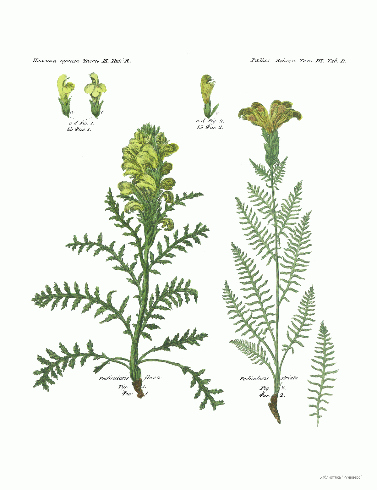 Том III. Таб.R. Pedicularis Flava. Pedicularis striata.