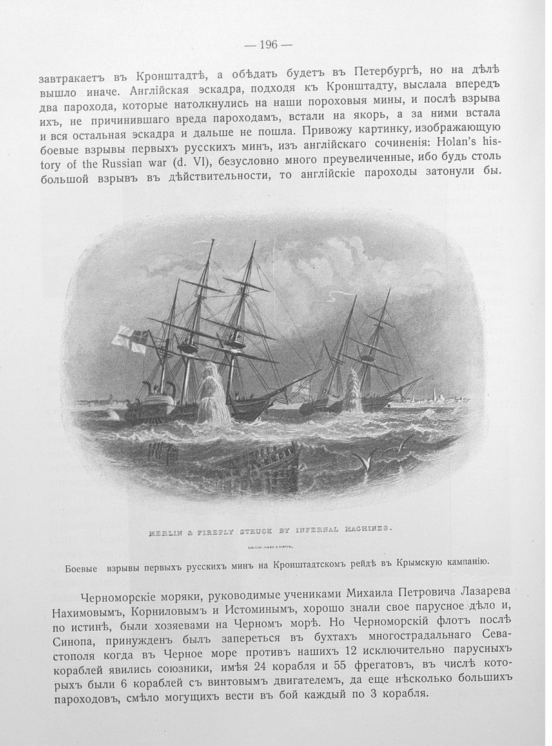 Боевые взрывы первых русских мин на Кронштадском рейде в Крымскую кампанию.