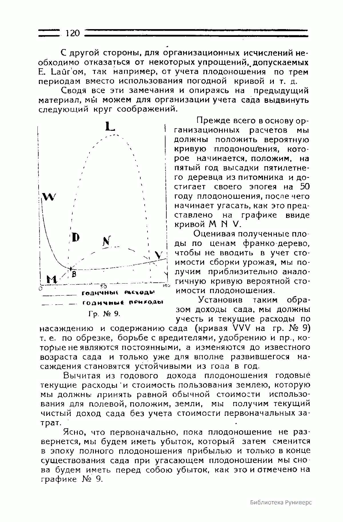 Граф.№9. Сопоставление кривых дохода сада и текущих расходов по насаждению и содержанию сада.