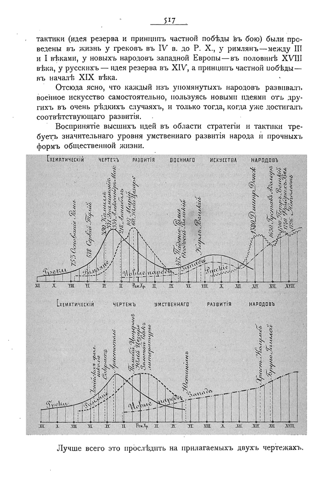 Схематические чертежи развития военного искусства и умственного развития народов.