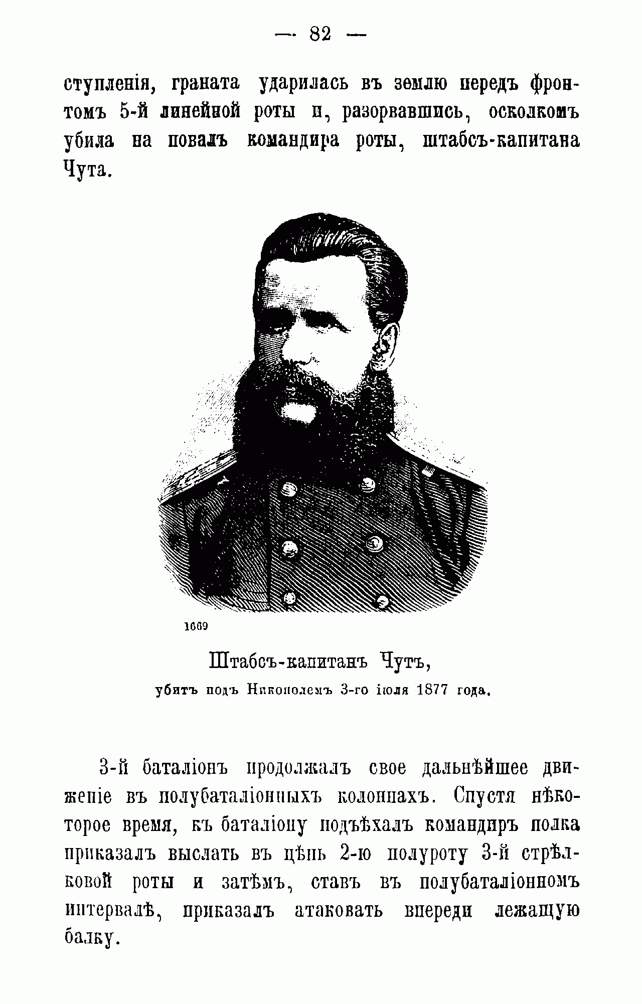 Штабс-капитан Чуть, убит под Никополем 3-го июля 1877 года.
