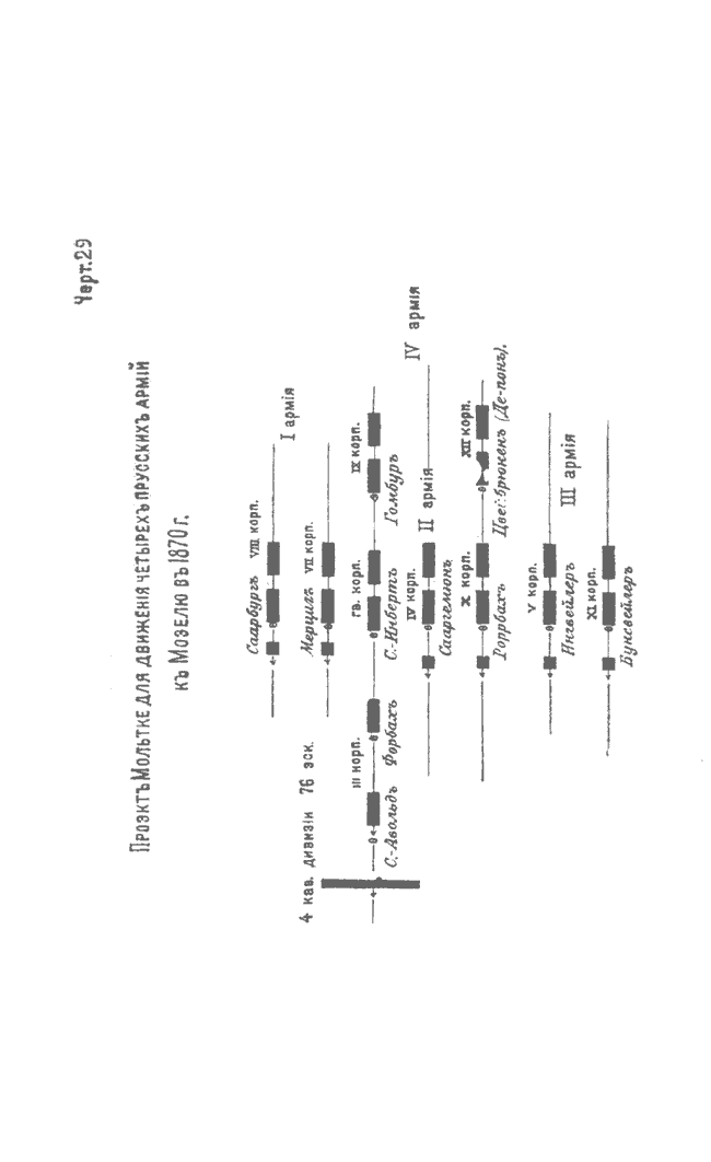 №29. Проект Мольтке для движения четырех прусских армий к Мозелю в 1870 г.