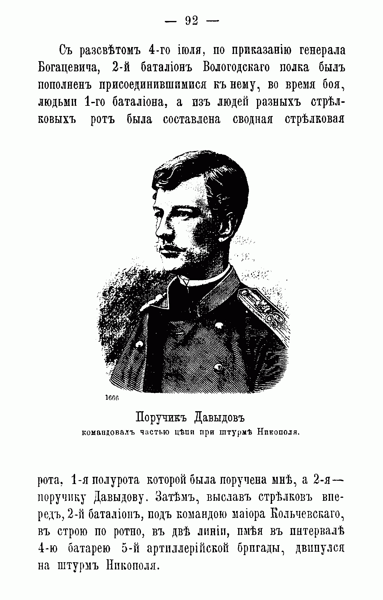 Поручик Давыдов, командовал частью цепи при штурме Никополя.