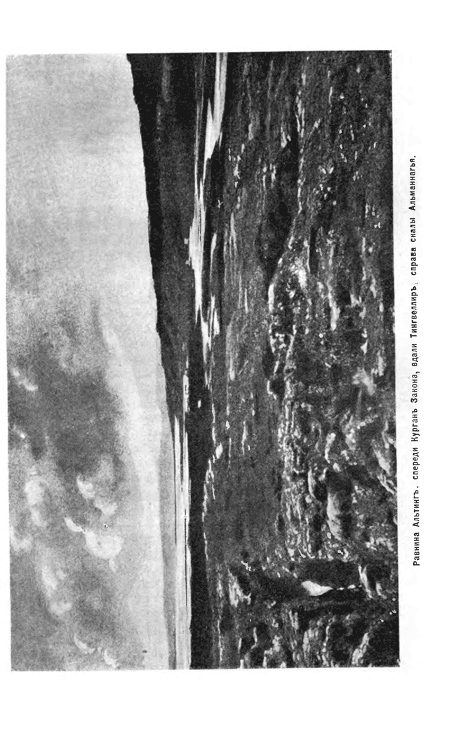 Равнина Альтинг, спереди Курган Закона, вдали - Тингвеллир, справа - скалы Альманнагья.