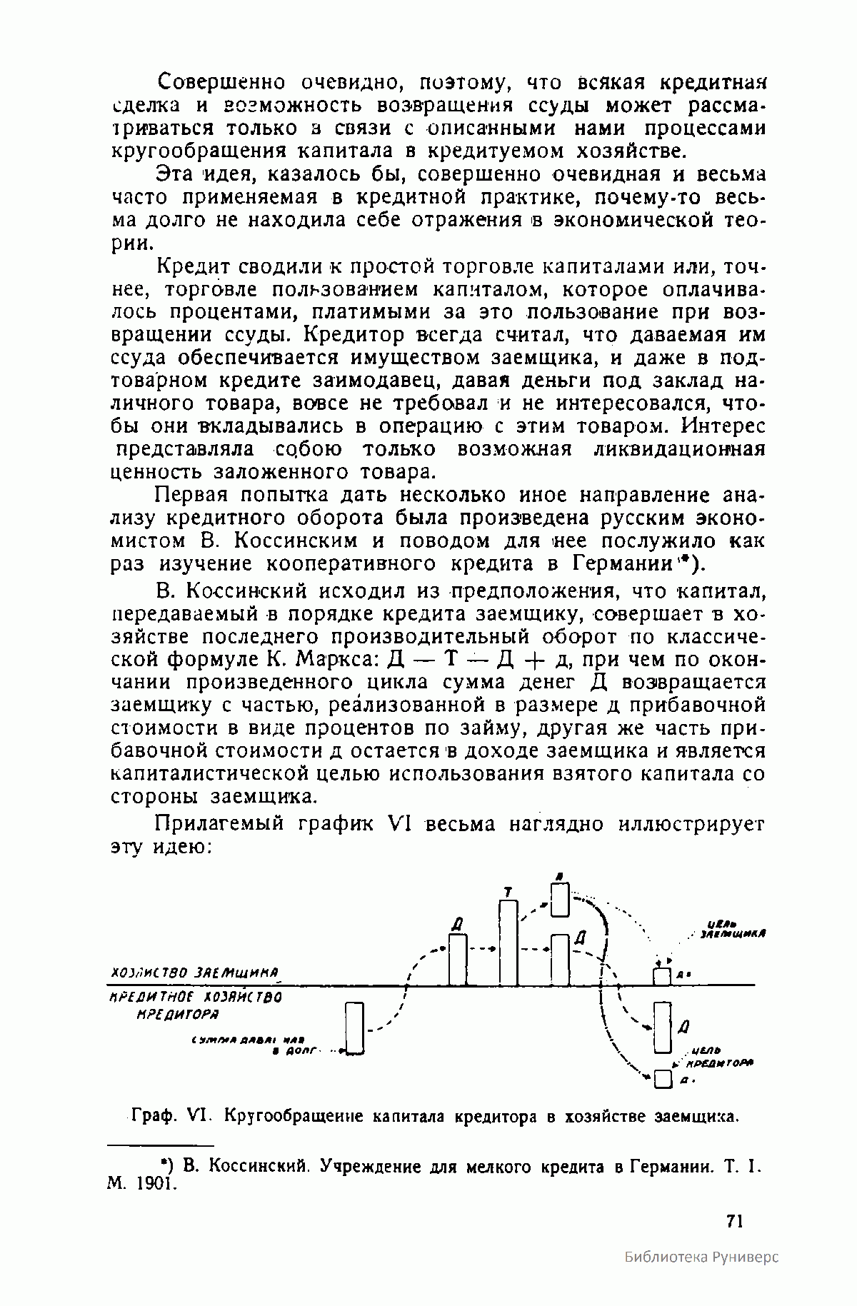 График VI. Кругооборот капитала кредитора в хозяйстве заемщика.