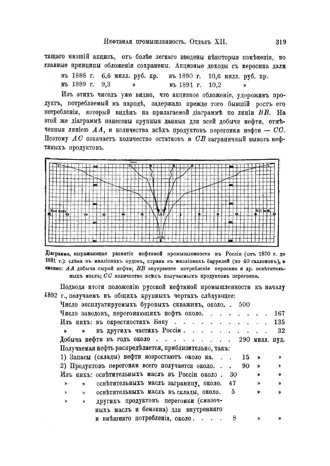 Диаграмма, выражающая развитие нефтяной промышленности в России.