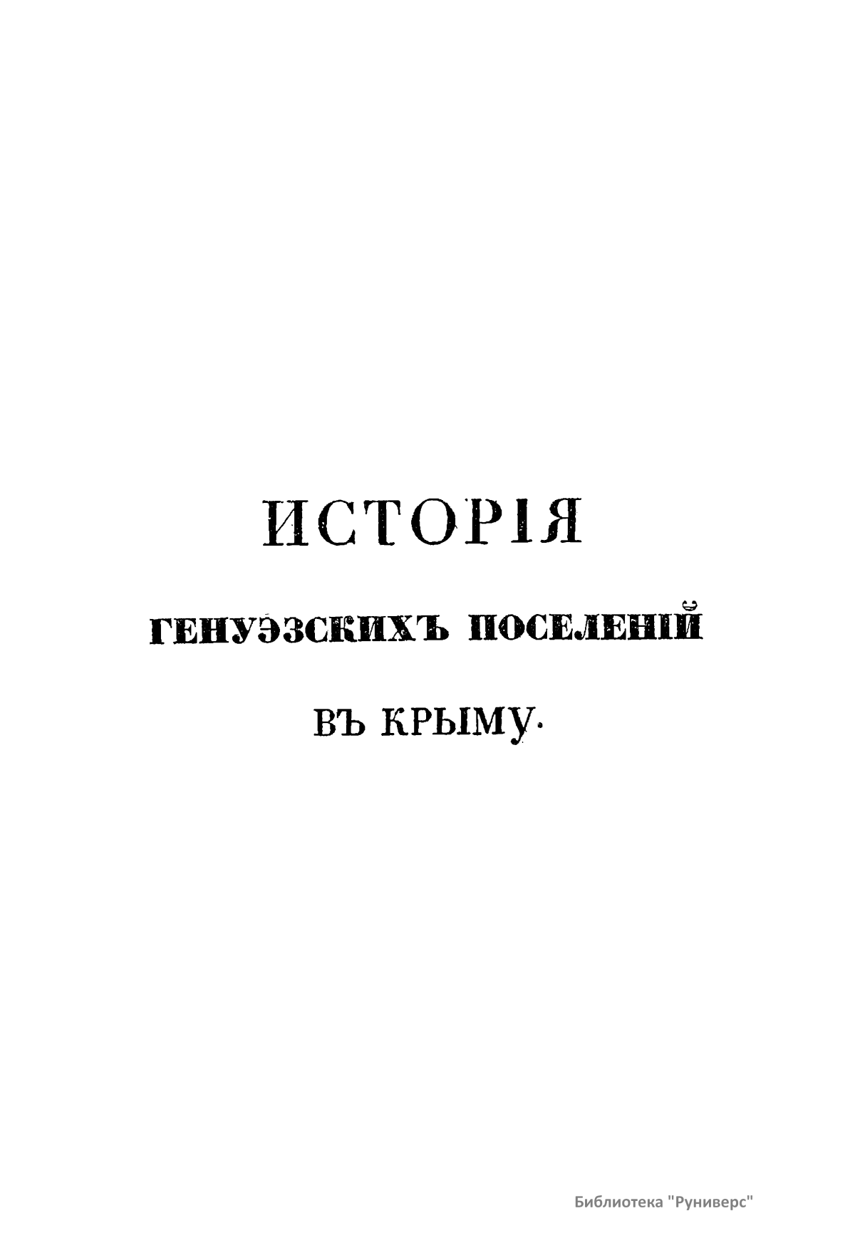 Член Московского общества истории и древностей Российских рассказывает о славном двухсотлетнем пребывании генуэзцев в Крыму и их гибели в 1475 году под ударами турок.