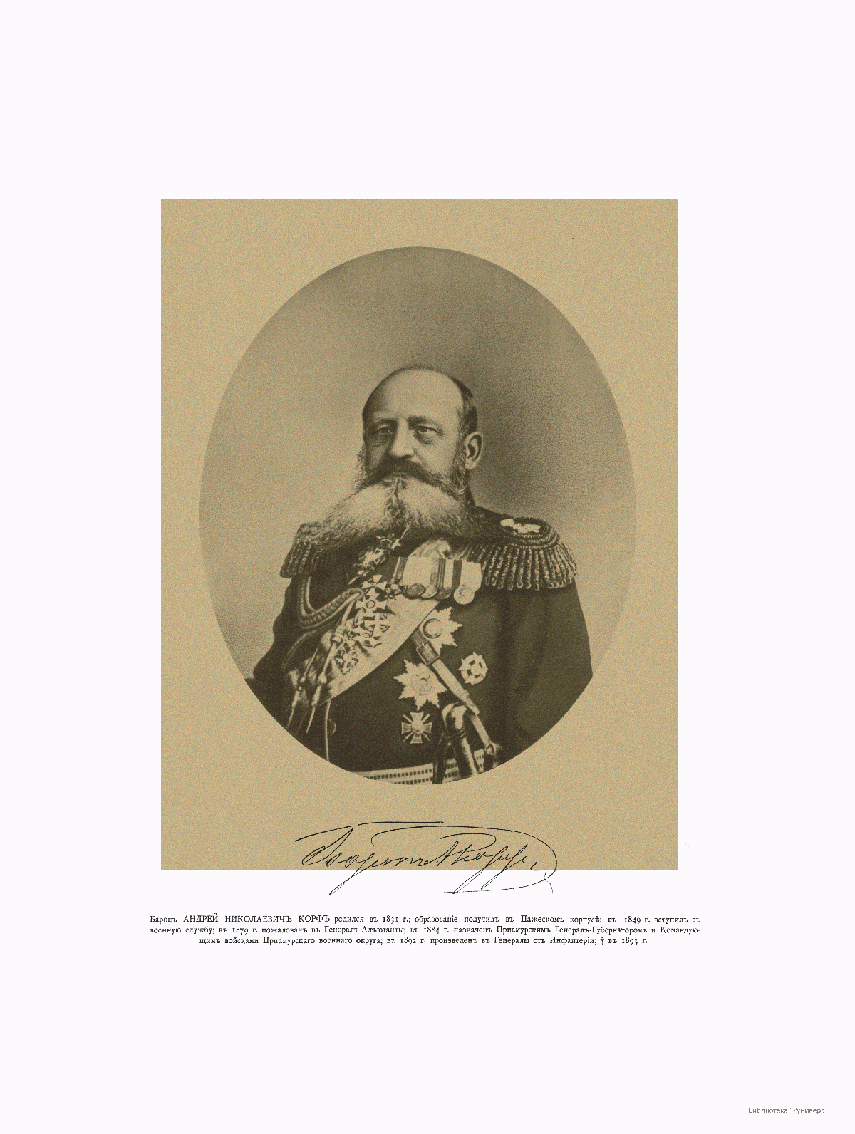 Приамурский Генерал Губернатор Барон Андрей Николаевич Корф, 1831-1893.