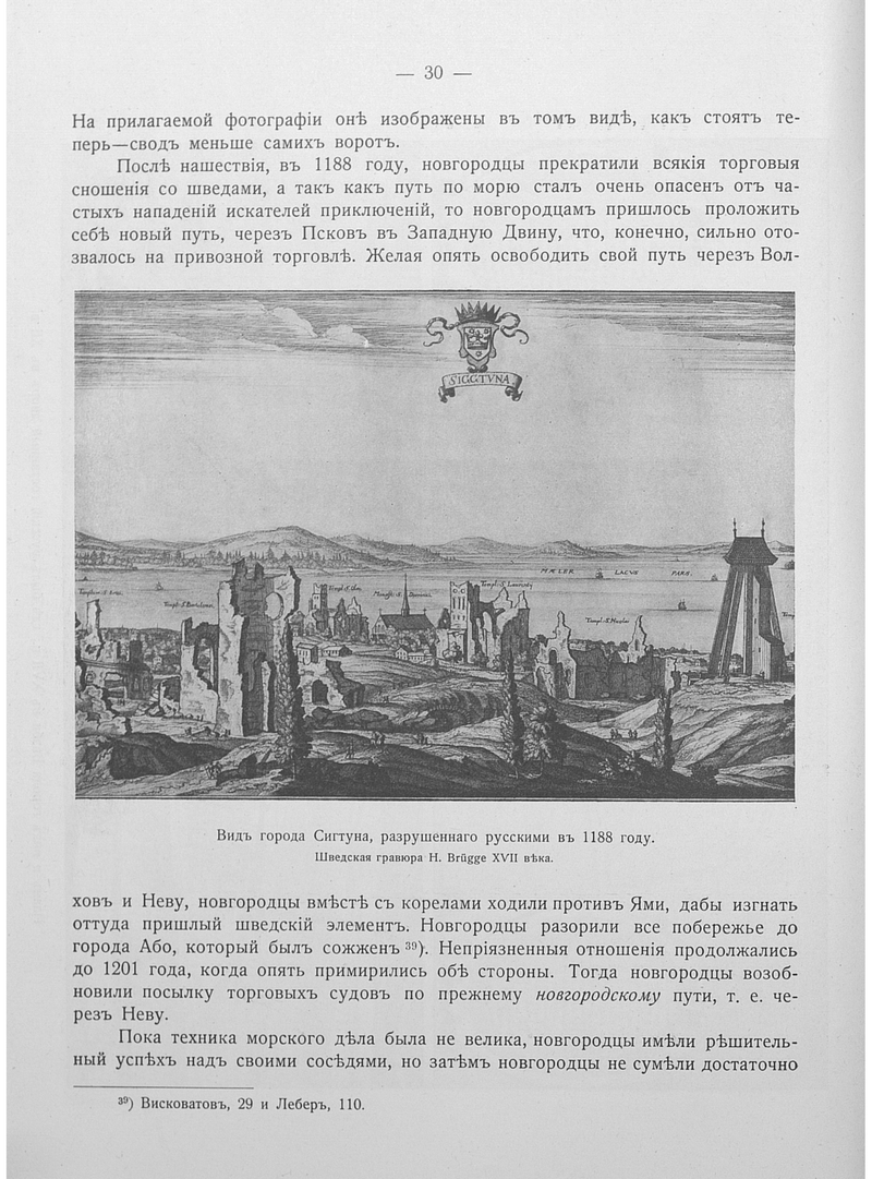 Вид города Сигтуна, разрушенного русскими в 1188 году.