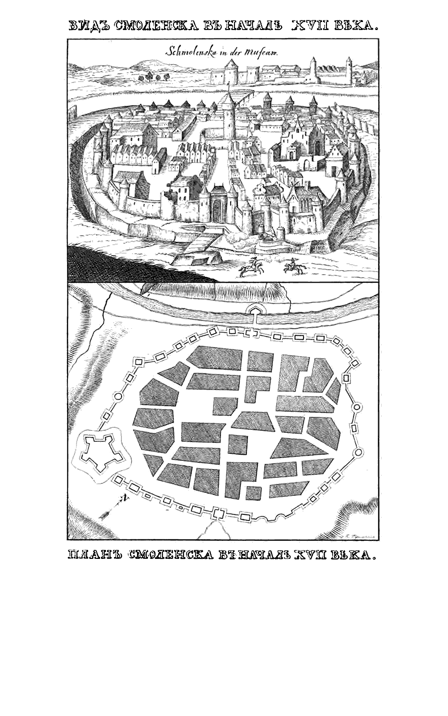 Вид и план Смоленска в начале XVII века