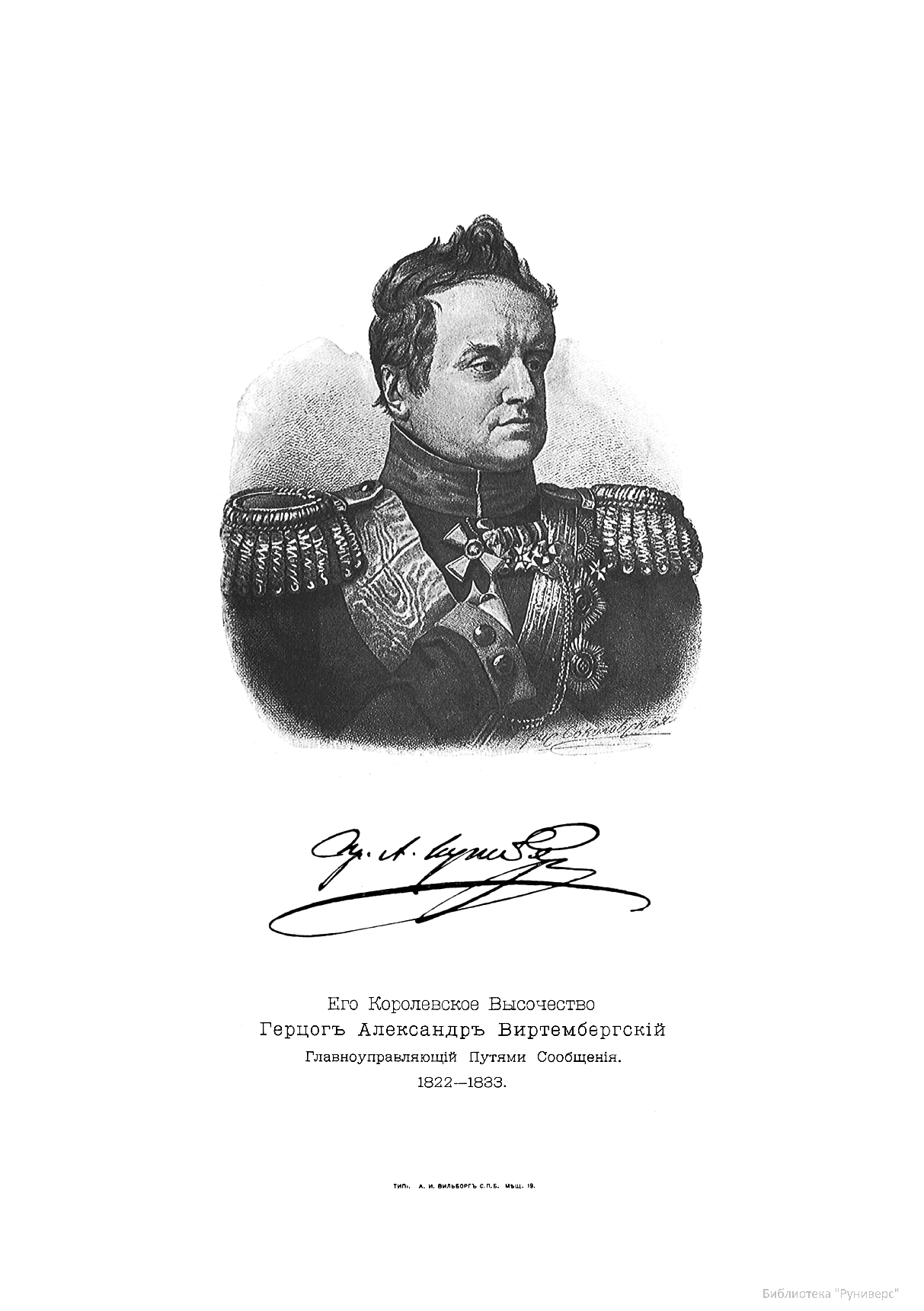 Его Королевское Высочество Герцог Александр Виртембергский, Главноуправляющий Путями Сообщения 1822-1833.