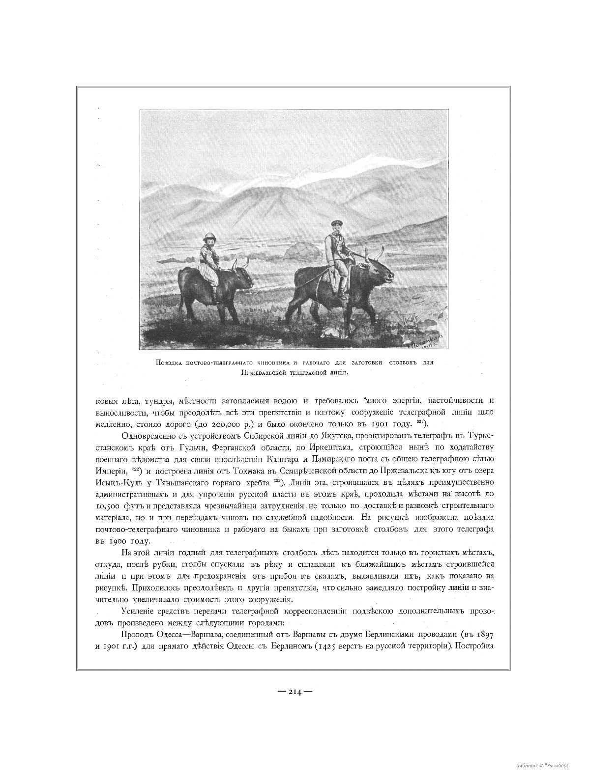 Поездка почтово-телеграфного чиновника и рабочего для заготовки столбов для Пржевальской телеграфной линии.