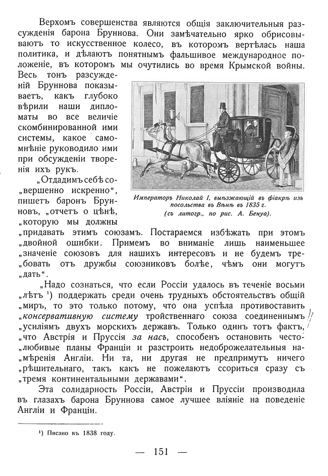Император Николай I , выезжающий в фиакре из посольства в Вене в 1835 году.