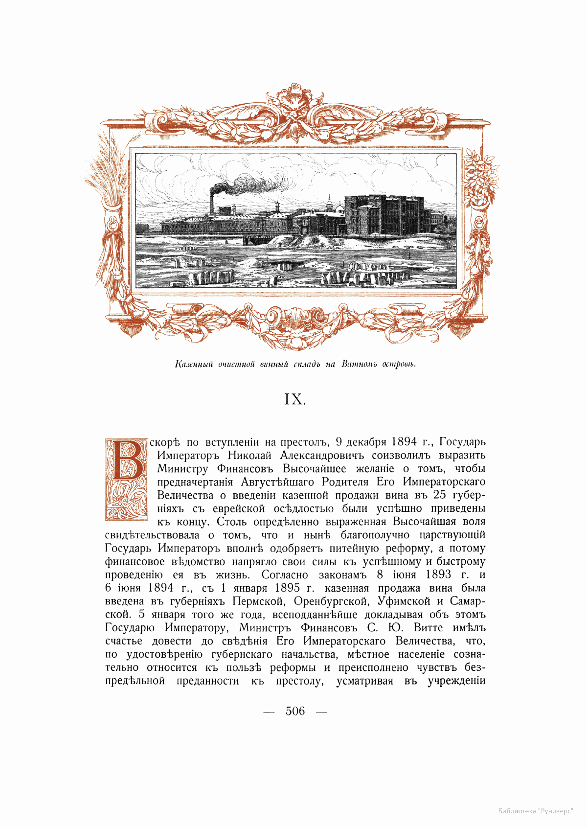 Казенный очистной винный склад на Ватном острове в С.-Петербурге.