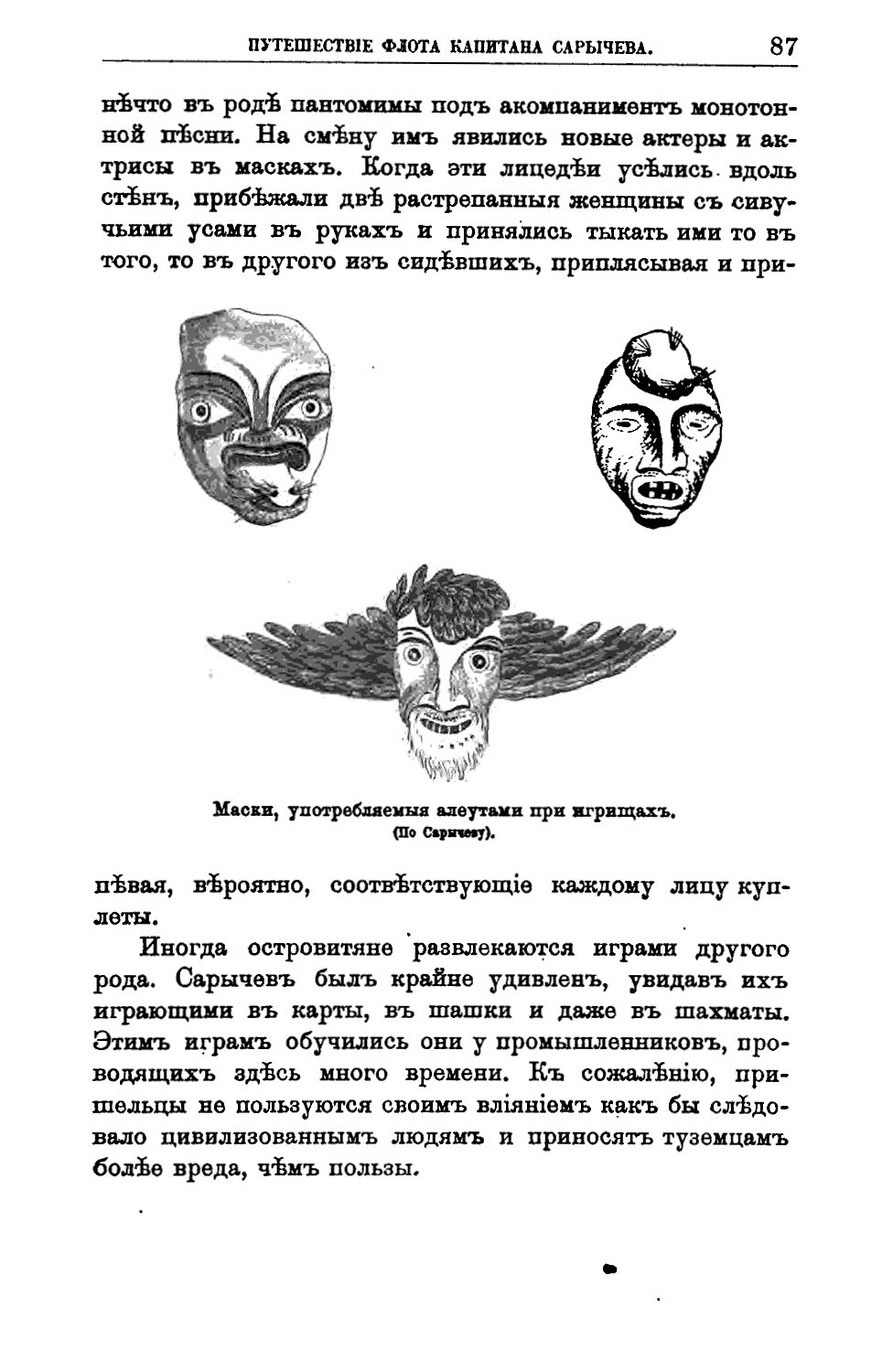 Маски, употребляемые алеутами при игрищах.