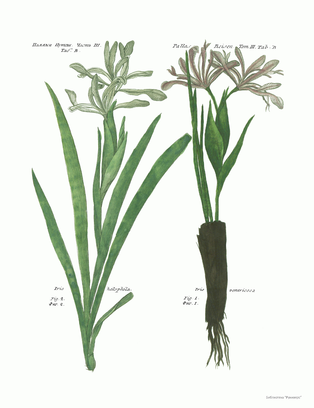 Том III. Таб.B. Iris halophila. Iris pentricosa.