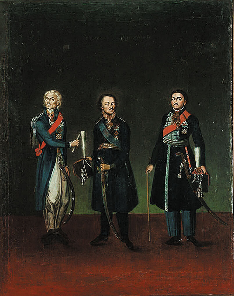 Тройной портрет атаманов Войска Донского: Ф.П. Денисов, М.И. Платов,В.П. Орлов