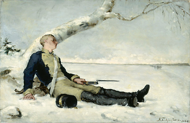 Х.Шерфбек. Раненый солдат на снегу. 1880 год