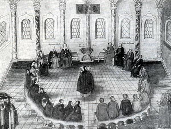Заседание Земского Собора 1613 года. Из рукописи «Избрание на царство М.Ф. Романова». 1673 год