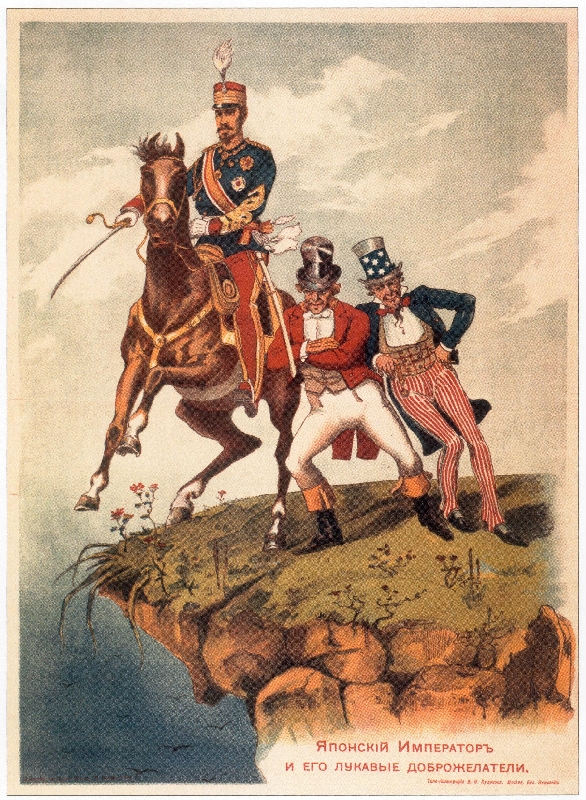 Русский плакат русско-японской войны Японский микадо и его лукавые доброжелатели. 1904 год