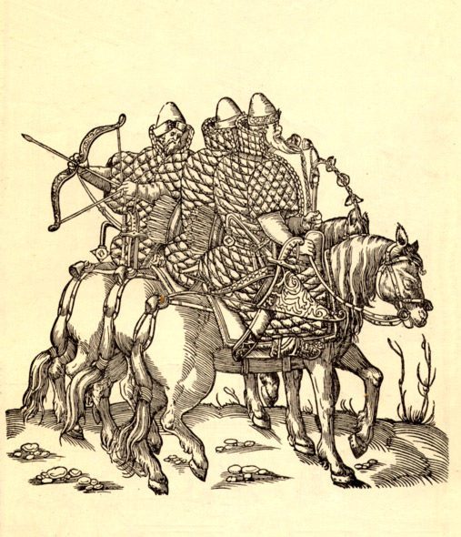 Вооружение русской дворянской конницы. Гравюра из книги С. Герберштейна «Записки о Московитских делах…». 1556 год