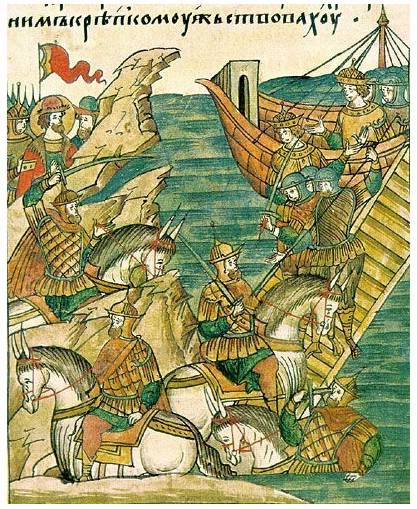Невская битва. Подвиг Гаврилы Алексича. Лицевой летописный свод 16 века