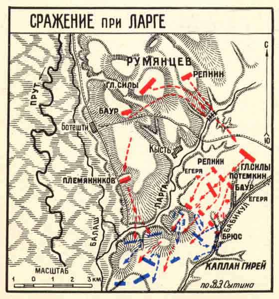 Карат сражения при Ларге 7 июля 1770 года. Источник - Бескровный Л.Г. Атлас карт и схем по русской военной истории. — М.: Военное издательство Народного комиссариата вооруженных сил Союза ССР, 1946. Лист 32