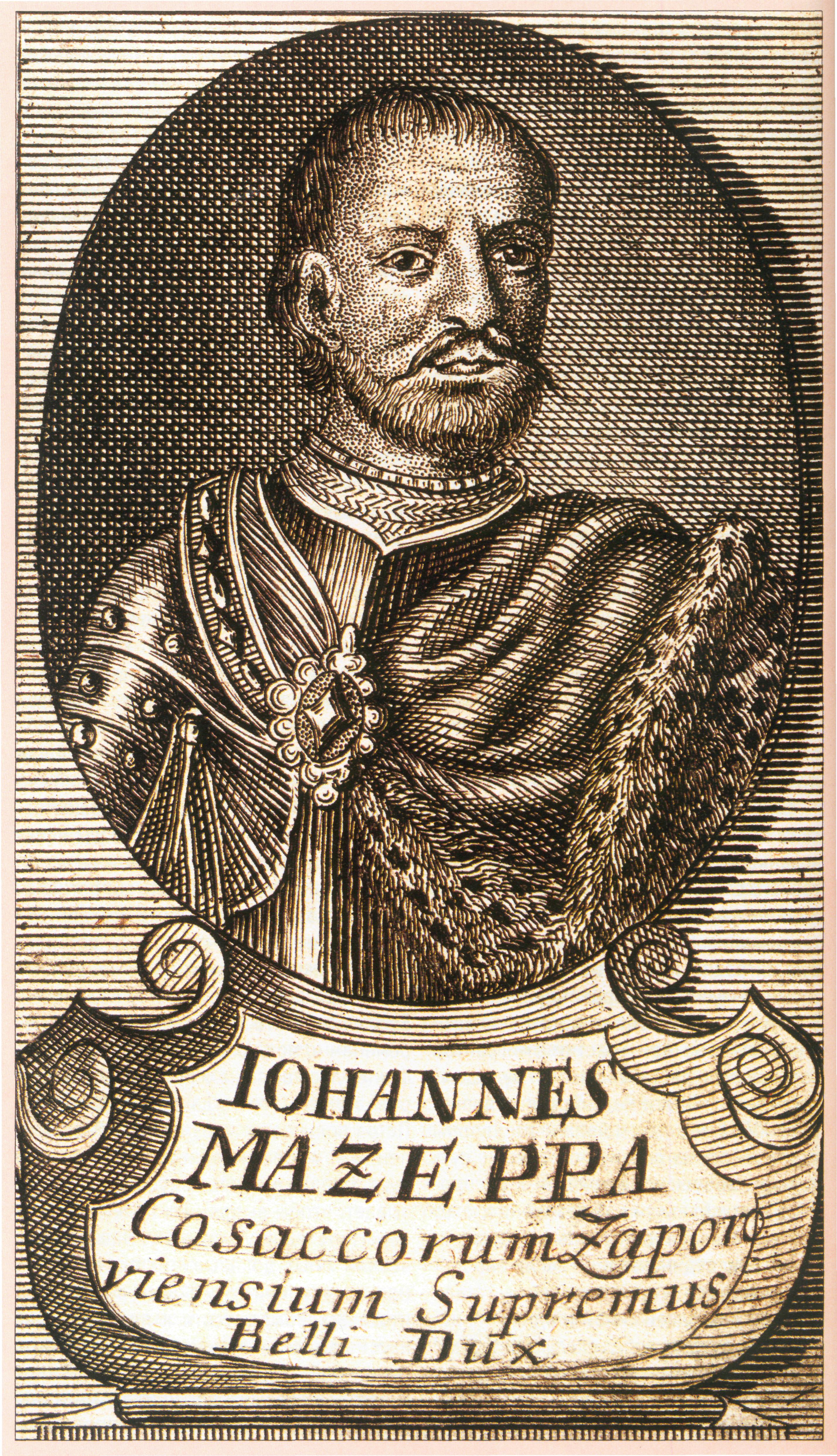 «Верховный военный вождь запорожских казаков Иван Мазепа». И. Бернигерот. Немецкая гравюра первой половины XVIII века.