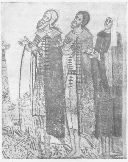 Одежды новгородских бояр XV века.  Икона «Молящиеся новгородцы»