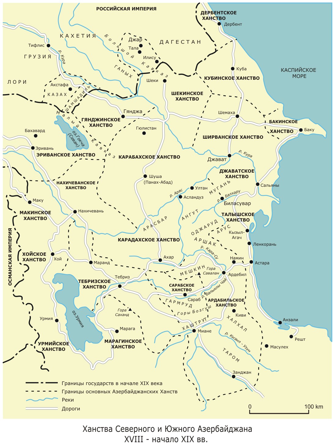 Карта ханств Северного и Южного Азербайджана, XVIII — начало XIX вв.