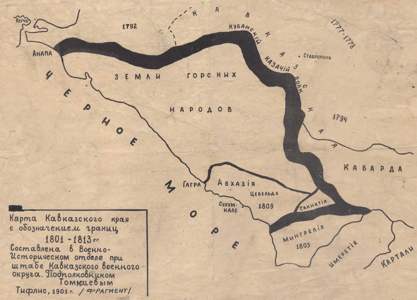 Карта исторического отдела Кавказского военного округа. 1901 г.