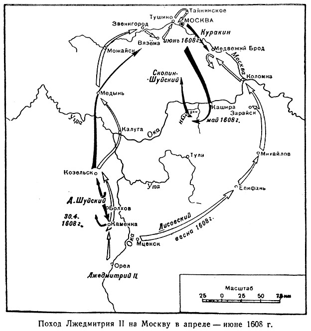 1608 год. 11 июня (1 июня ст.ст.) Лжедмитрий II с войском подошел к подмосковному селу Тайнинское, чтобы выбрать место для своего лагеря. Выбор пал на село Тушино, по названию которого Лжедмитрию было дано прозвище - «Тушинский вор».