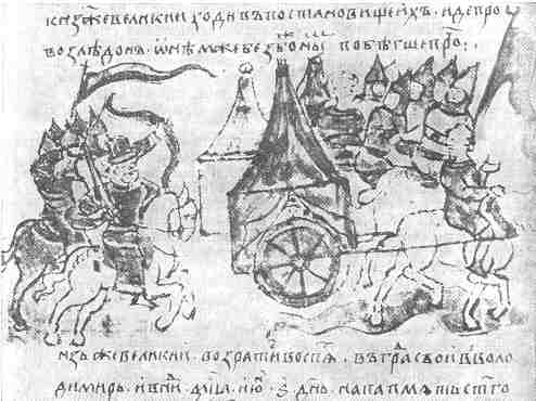 Половецкие вежи. Миниатюра Радзивилловской летописи. 15 век