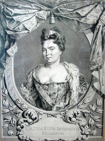 «Екатерина I Алексеевна (урожденная Марта Скавронская) (5.4.1684, Лифляндия - 6.5.1727, Санкт-Петербург), российская императрица (коронована 7.5.1724, правила с 28.1.175). Вторая жена Петра I. Дочь прибалтийского крестьянина Самуила Скавронского. Крещена по католическому обряду. После смерти отца была в услужении у суперинтенданта Э. Глюка в Мариенбурге (Лифляндия). Около 1701-1702 была замужем за шведским драгуном Иоганном. В ходе Северной войны 25.8.1702 при взятии Мариенбурга попала в русский...