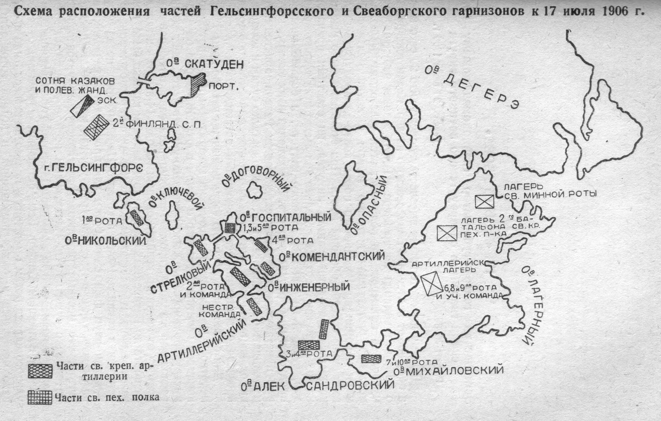 Схема расположения частей Гельсингфорского и Свеаборгского гарнизонов к 17 июля 1906