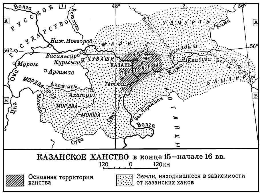 Карта Казанского ханства в конце XV-начале XVI века
