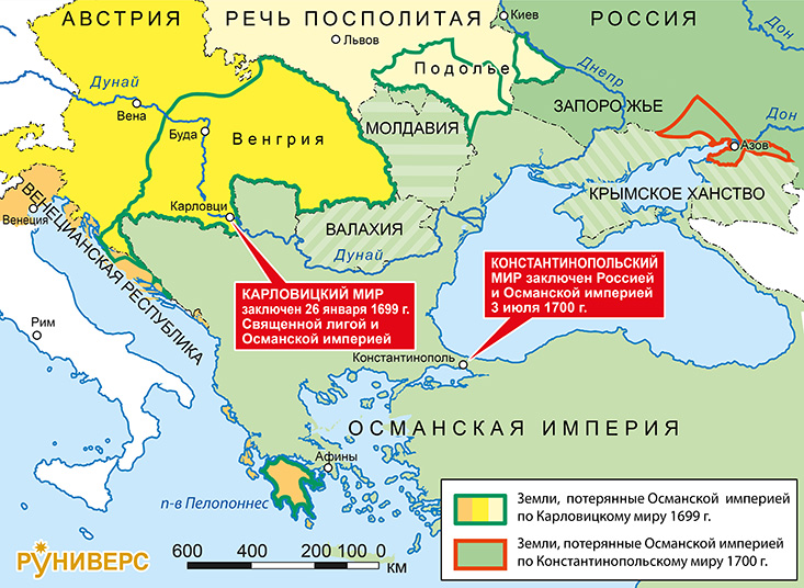 Великая Турецкая война 1682-1699 гг. Границы после войны на 1700 г.