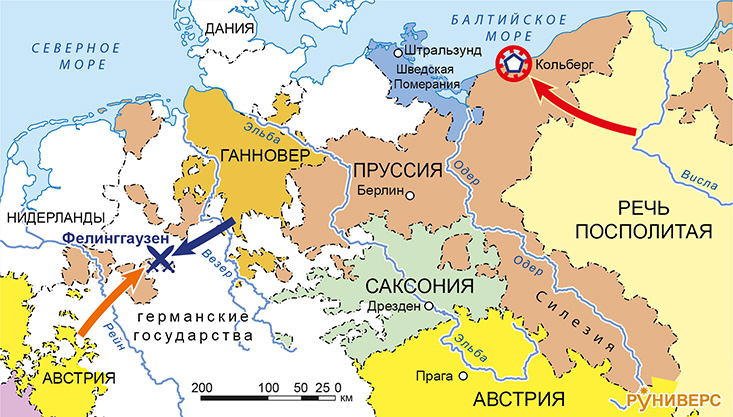 Полки Англии, Испании, Франции, Швеции, Австрии, Баварии, Саксонии, Пруссии