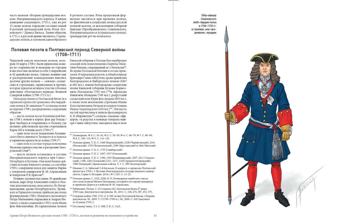 Разворот книги Олега Курбатова "Армия Петра Великого: русские полки 1700–1720 гг., истоки и развитие их полкового устройства"