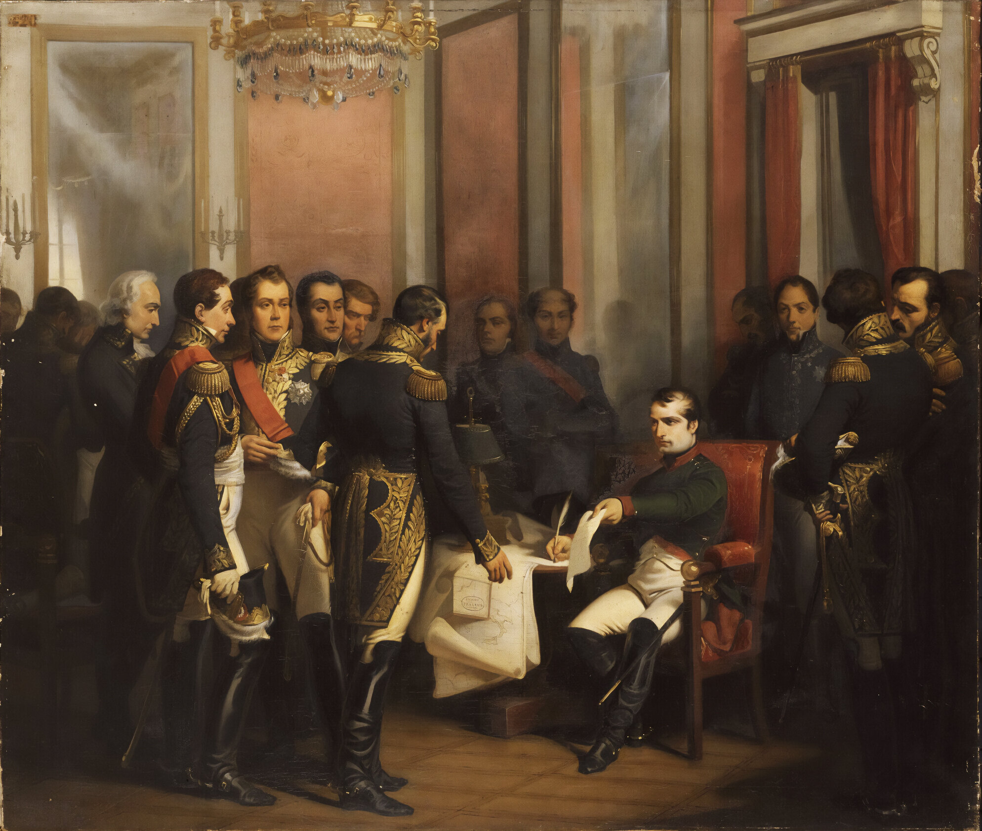 Наполеон, Юг-Бернар Маре, Луи Александр Бертье, Мишель Ней, Франсуа Жозеф Лефевр, Николя Удино, Этьен Макдональд, Арман де Коленкур, Анри Гасьен Бертран