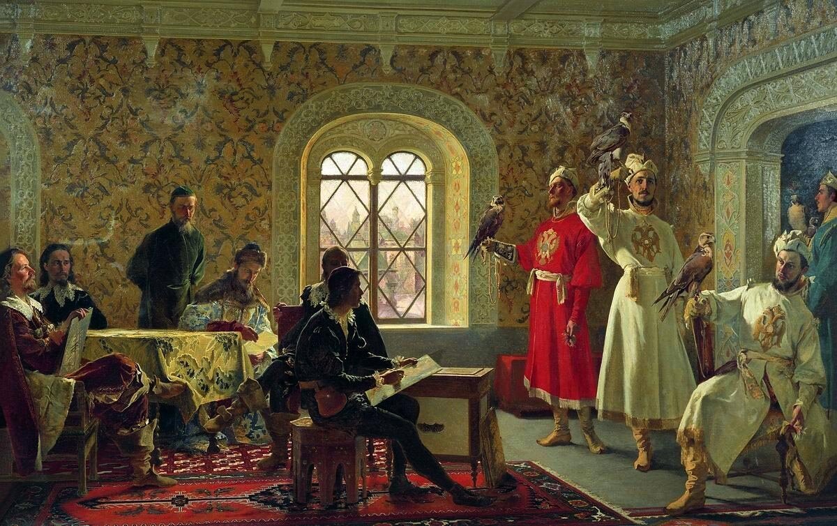Итальянский посланник Кальвуччи зарисовывает любимых соколов царя Алексея Михайловича