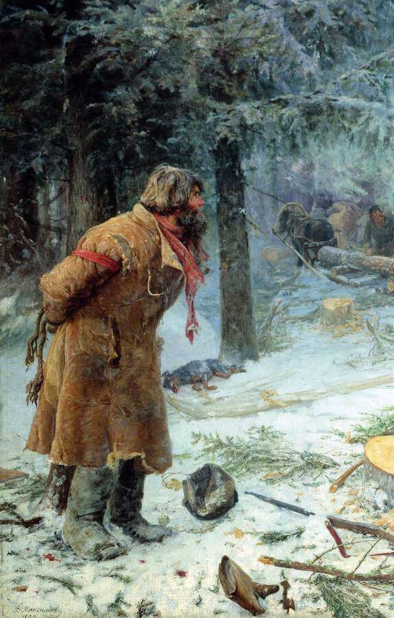 Как пошли мы на разбой, — продолжал показывать Ларион,— имели мы сбор в деревне Перновичах, дневали в доме Перфилия Боровка, а в сумерки поехали на семи лошадях. Вели нас крестьяне Домогацкого Иван да Алексей Дмитриевы. Подвели они к сельцу Звегину, а там указали ехать позади огорода, по лощине. Как подъехали к передним воротам, есаул Осип Иванов перескочил через забор и отпер ворота. После того стали у конюшни. Перфилий Боровок с другими пошли к наугольной избе, где были караульщики. Их заперли, оттуда пошли на задний двор и там избы в дверях и по окнам колодьем позавалили и тако ж мужиков и женок не выпустили и караул к ним свой поставили с кольями и с дубьем. А ружья с нами было: 5 рогатин, 2 фузеи, да винтовка, а другое оружие было дубье да колье.