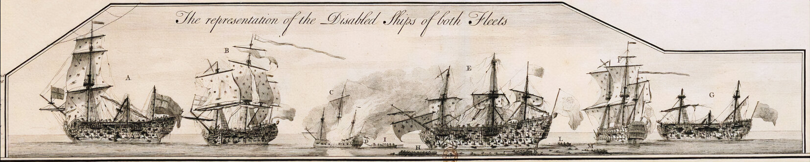 Изображение поврежденных в сражении при Тулоне английских и французских кораблей